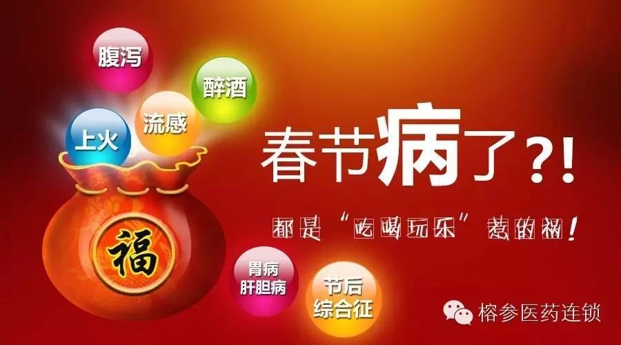 10 Jan 春節(jié)病了?!解決各種節(jié)后綜合征! 2017-02-21 15:25:34 點(diǎn)擊“榕參醫(yī)藥連鎖”關(guān)注春暖花開當(dāng)人們還沉浸在春節(jié)長(zhǎng)假和節(jié)日的喜慶中,突然的暴飲暴食,奔波勞累,情緒大幅波動(dòng)可能會(huì)讓很多人不適應(yīng),從而被疾病絆住了享樂的腳步。吃喝得多了,胃腸道不干了,平時(shí)的胃炎,痔瘡急性發(fā)作了;玩樂多了,感冒咳嗽,心腦血管疾病一波接一波。一不小心,還帶了一身病菌回來回來;上班了吧,身心疲勞,精神萎靡的。。。詳細(xì)了解一些春節(jié)高發(fā)疾病,輕松應(yīng)對(duì)各種節(jié)后綜合癥,健康的度過一個(gè)快樂的新春。吃出的病反復(fù)大量食用高能量、高脂肪、高蛋白膳食、過食辛辣等不良飲食方式讓胃腸道不堪重負(fù),上火,腹瀉、消化不良是常見的疾病1上火--陰陽(yáng)失衡,內(nèi)火旺盛是形容身體內(nèi)某些熱性的癥狀。癥狀包括眼睛紅腫、口角糜爛、尿黃和牙齒痛等。飲食上要注意多吃含維生素的蔬菜水果,多喝水少喝酸甜飲料,少吃辛辣煎炸食品,少抽煙喝酒。吃水果也要引起注意,有的水果屬于熱性水果,比如荔枝、橘子、菠蘿、桂圓、石榴、芒果等。食品中的蔥、姜、蒜、酒、辣椒、胡椒、花椒、熏蒸食品,四川的麻辣燙等都是容易上火的。黃連上清片為清熱劑,具有清熱通便,散風(fēng)止痛之功效。主治上焦內(nèi)熱,癥見頭暈?zāi)X脹,牙齦腫痛,口舌生瘡,咽喉紅腫,耳痛耳鳴,暴發(fā)火眼,大便干燥,小便黃赤。2腹瀉--急性腸炎,胃腸型感冒指逢年過節(jié),常會(huì)因貪吃而傷食,傷食會(huì)出現(xiàn)腹瀉,一般癥狀是腹痛腸鳴,瀉下糞便臭穢,瀉后腹痛減輕,伴有脘腹脹滿,噯腐酸臭,食欲不振等。不同情況的傷食需要辯證處理,對(duì)各種肉類傷食,可嚼食山楂片、山楂糕;對(duì)魚肉傷食,可選生姜紫蘇汁;雞蛋傷食,可選白醋米湯服;面食所傷,可取生姜米酒服;腹脹、厭食甚者,可取陳皮姜紅糖飲;兒童傷食,可選山楂青皮煎湯。正露丸化滯止瀉,用于飲食不節(jié)或水土不服引起的成人及小兒腹瀉,屬于濕熱、食滯證者。癥見:食欲不振,惡心嘔吐,腹脹腹瀉,消化不良。3消化不良--胃脹、食欲不振消化不良,是指具有上腹痛、上腹脹、早飽、噯氣、食欲不振、惡心、嘔吐等不適癥狀,消化不良實(shí)際是所有胃部不適的總稱,消化不良癥狀說明消化過程受到了某種原因的干擾。消化不良可以是偶然的,也可以是慢性持續(xù)的。多潘立酮片由胃排空延緩、胃食道反流、食道炎引起的消化不良癥。上腹部脹悶感、腹脹、上腹疼痛;-曖氣、腸胃脹氣;-惡心、嘔吐;口中帶有或不帶有反流胃內(nèi)容物的胃燒灼感。喝來的傷節(jié)日飲酒過度,肝臟胰臟負(fù)擔(dān)過大,導(dǎo)致急性肝膽胰炎癥的高發(fā)。泌尿系統(tǒng)也不可避免受到波及,特別是前列腺炎,泌尿系統(tǒng)感染。1胃病--上腹不適疼痛、飽脹暖氣環(huán)境、飲食、藥物,細(xì)菌以及吸煙,過度飲酒等可導(dǎo)致胃酸過度分泌而破壞胃保護(hù)層,從而產(chǎn)生潰瘍。春節(jié)喝酒是其常見誘因。最常見的有上腹部不適或疼痛,惡心嘔吐、腹瀉、食欲不振??沙砸恍┮紫?、清淡、營(yíng)養(yǎng)豐富的食物如五谷雜糧、豆?jié){、豆腐、蛋、魚、嫩瘦肉、動(dòng)物肝臟等,以減少胃酸對(duì)胃腸粘膜的刺激。該戒煙、酒、咖啡、濃茶、碳酸性飲品(汽水)、酸辣等刺激性食物。鹽酸雷尼替丁膠囊,適應(yīng)癥為用于緩解胃酸過多所致的胃痛、胃灼熱感(燒心)、反酸。用于治療十二指腸潰瘍、胃潰瘍、反流性食管炎、卓-艾(Zollinger-Ellison)綜合征及其他高胃酸分泌疾病。2急性胰腺炎臨床以急性上腹痛、惡心、嘔吐、發(fā)熱和血胰酶增高等為特點(diǎn)。病變程度輕重不等,輕者以胰腺水腫為主,臨床多見,病情常呈自限性,預(yù)后良好,又稱為輕癥急性胰腺炎。少數(shù)重者的胰腺出血壞死,常繼發(fā)感染、腹膜炎和休克等,病死率高,稱為重癥急性胰腺炎。西咪替丁片消化性潰瘍、上消化道出血等,也用于急性胰腺炎和胰腺囊樣纖維變、返流性食管炎、胃泌素瘤等。3急性膽囊炎是由于膽囊管阻塞和細(xì)菌侵襲而引起的膽囊炎癥;其典型臨床特征為右上腹陣發(fā)性絞痛,伴有明顯的觸痛和腹肌強(qiáng)直。約95%的病人合并有膽囊結(jié)石,稱為結(jié)石性膽囊炎;5%的病人未合并膽囊結(jié)石,稱為非結(jié)石性膽囊炎。消炎利膽片為祛濕劑,具有清熱,祛濕,利膽之功效。主治肝膽濕熱所致的肋痛,口苦;急性膽囊炎、膽管炎。玩出的禍青年人由于聚會(huì),旅游等群集活動(dòng)較多,容易感染細(xì)菌病毒,特別是上呼吸道感染。而放假后回來上班的“節(jié)后綜合癥”也越來越常見。1感冒總體上分為普通感冒和流行感冒,普通感冒,祖國(guó)醫(yī)學(xué)稱"傷風(fēng)",是由多種病毒引起的一種呼吸道常見病,其中30%-50%是由某種血清型的鼻病毒引起。流感病毒引起的急性呼吸道傳染。隔離抗病毒治療,臥床休息,多飲水。撲熱息痛用于普通感冒或流行性感冒引起的發(fā)熱,也用于緩解輕至中度疼痛如頭痛、關(guān)節(jié)痛、偏頭痛、牙痛、肌肉痛、神經(jīng)痛、痛經(jīng)。2病毒性肝炎法定傳染病,具有傳染性較強(qiáng)、傳播途徑復(fù)雜、流行面廣泛、發(fā)病率較高等特點(diǎn);部分乙型和非甲非乙型肝炎病人可